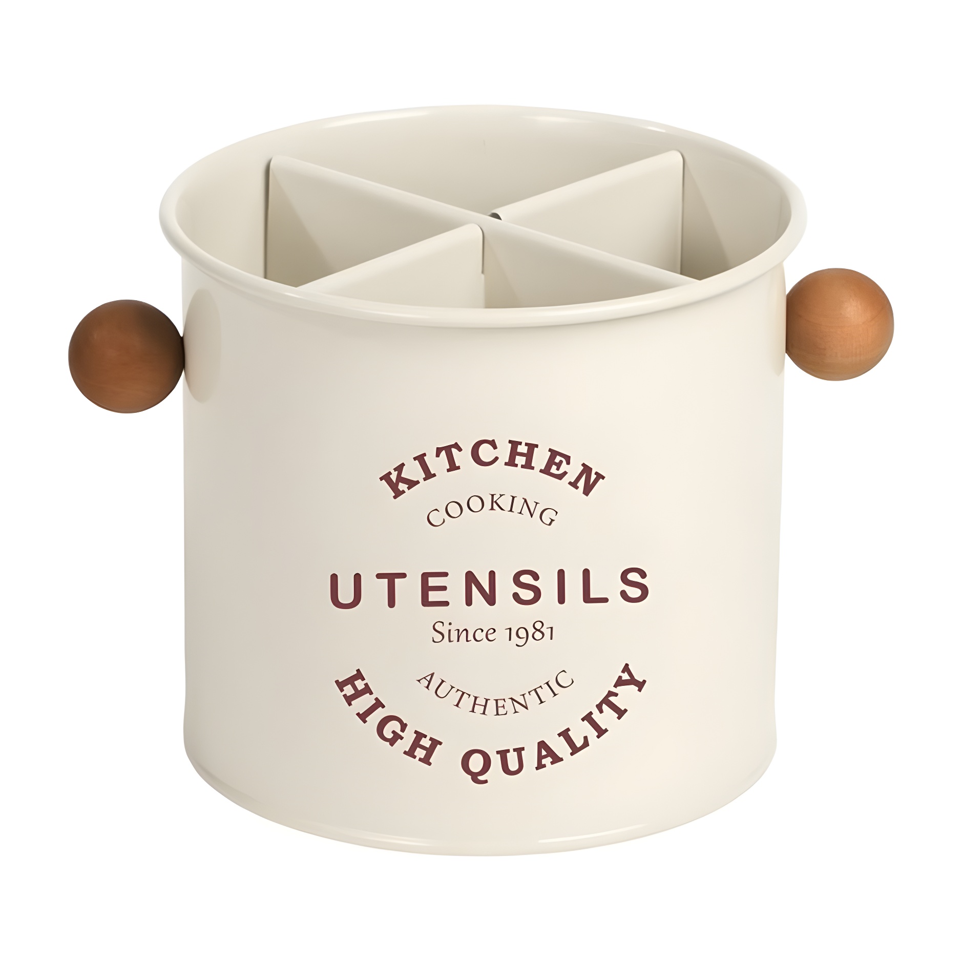 Dividido em 4 compartimentos para organizar espátulas, conchas e outros utensílios de cozinha, e equipado com alças laterais que facilitam o seu transporte. O seu design compacto torna-o perfeito para manter os utensílios sempre à mão.