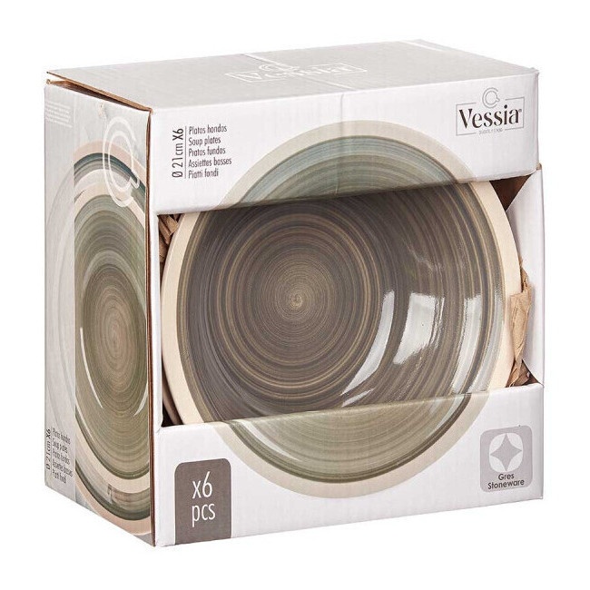 Prato de 21 cm em grés com borda branca funda - 6 unidades