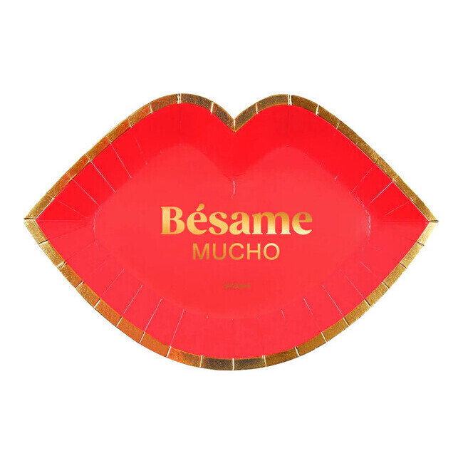 Pratos de 19 x 27 cm em forma de lábios vermelhos - 6 unid.