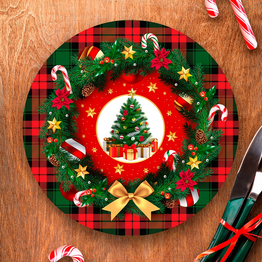 Pratos de 23 cm de Árvore de Natal - 6 unidades
