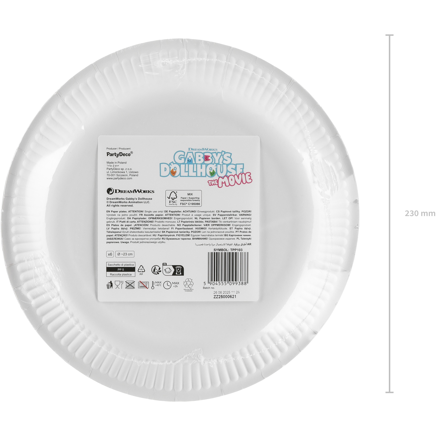 Pratos da Casa de Bonecas da Gabby de 23 cm - 6 unidades