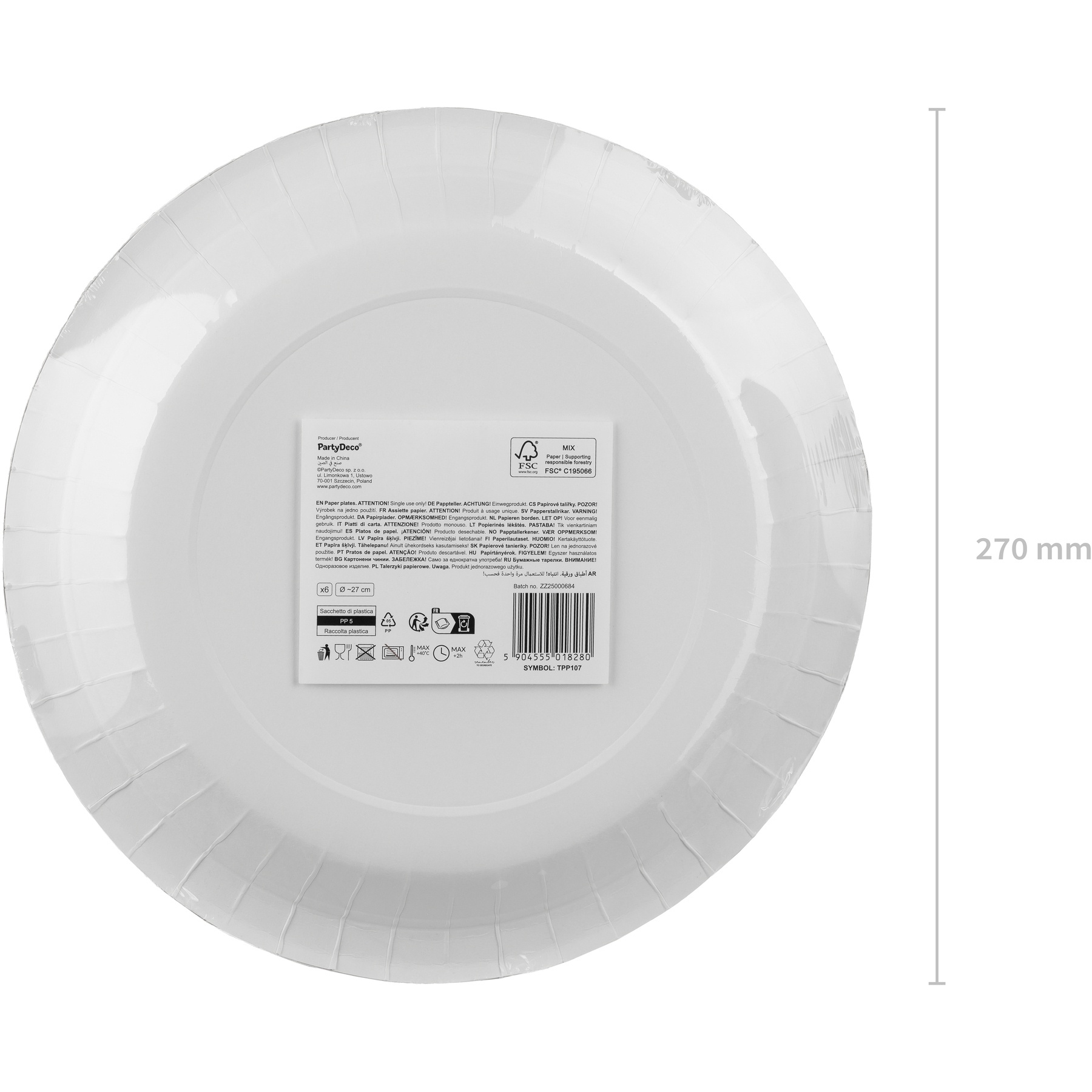 Eliminar según la normativa local de residuos; si el plato está limpio y el recubrimiento lo permite, reciclar como papel/cartón.
