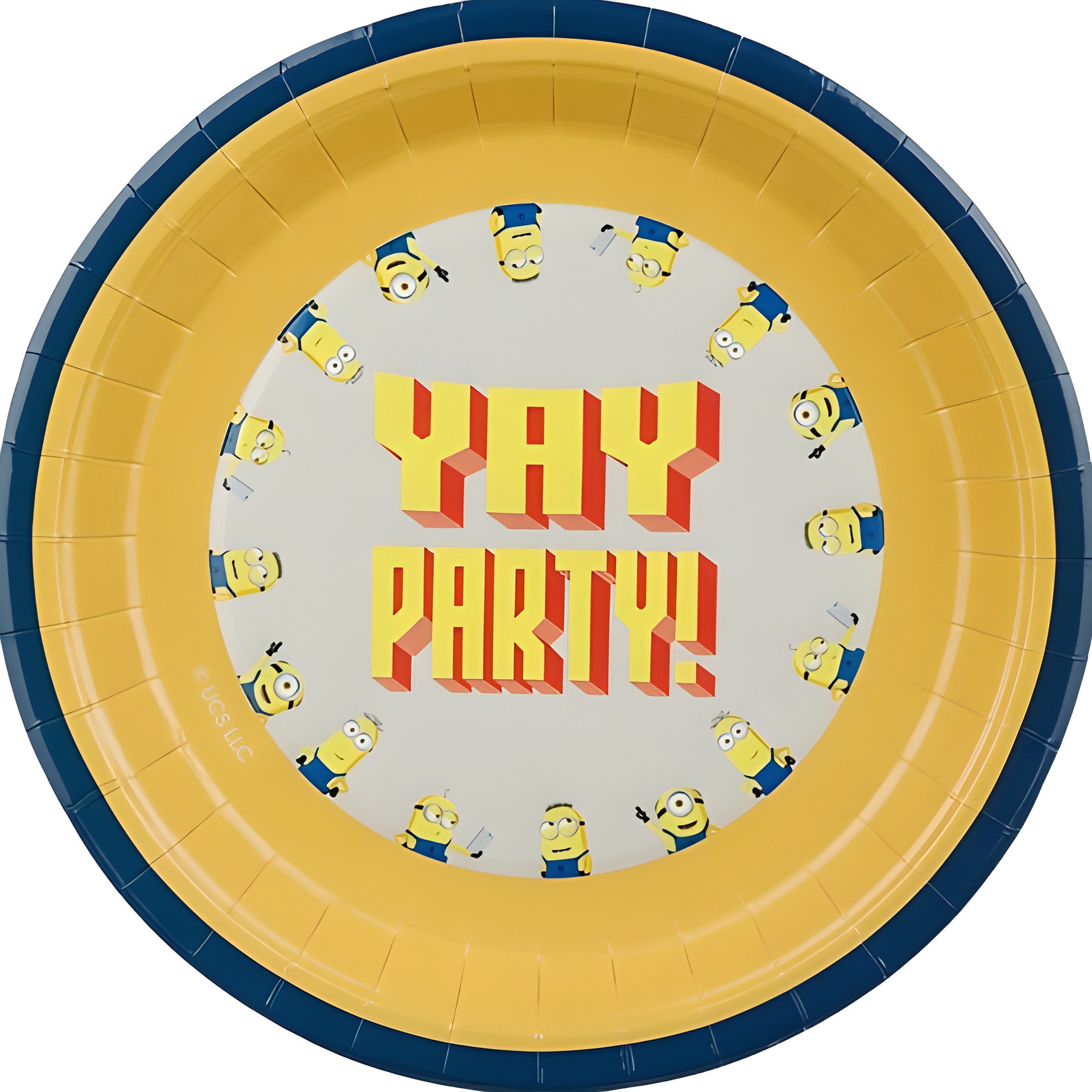 Pratos descartáveis com o divertido design dos Minions e a frase Yay Party!.