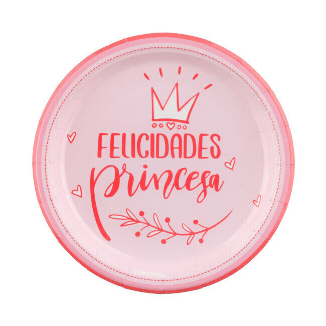 Pratos Feliz Aniversário Princesa 18 cm - 8 unidades