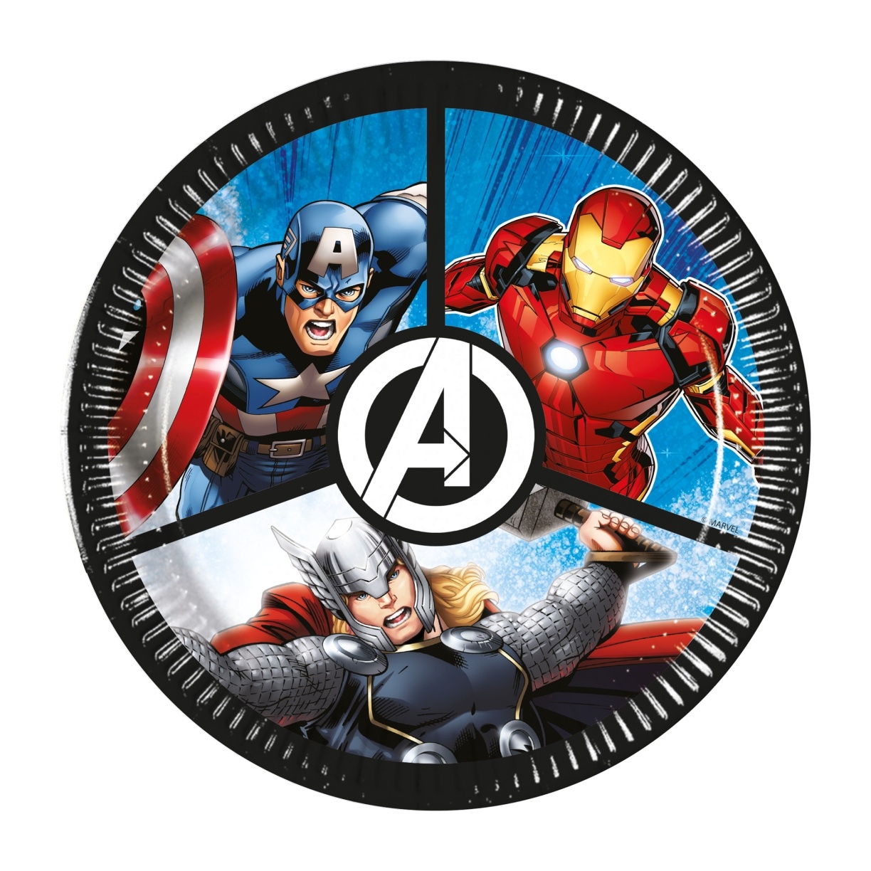 Pack com 8 pratos de 20 cm com estampa oficial dos Vingadores, pensado para as mesas infantis do senhor/a senhora.