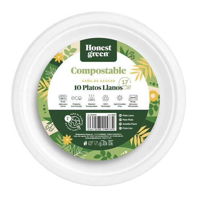 Pratos feitos de cana-de-açúcar compostável e amiga do ambiente em formato económico.