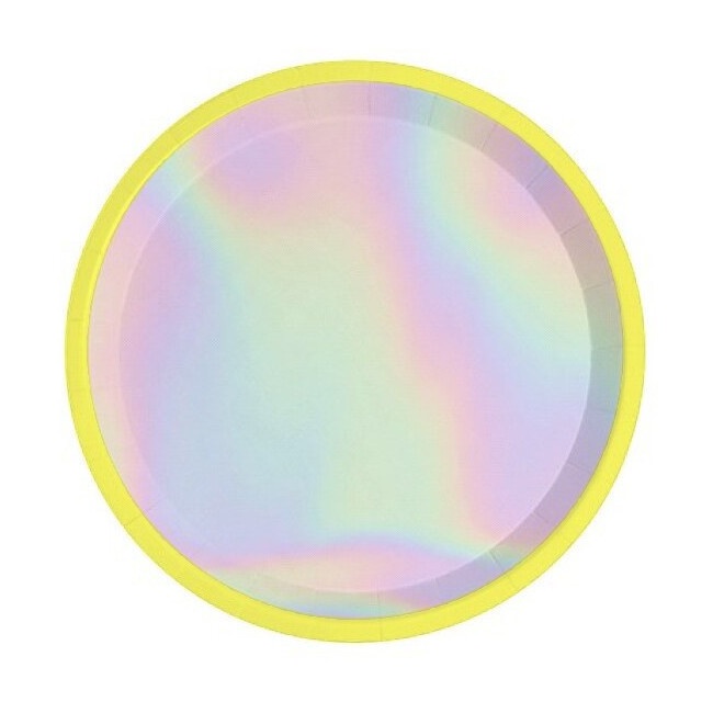 Pratos redondos iridescentes com rebordo flúor 17 cm - 10 unid.