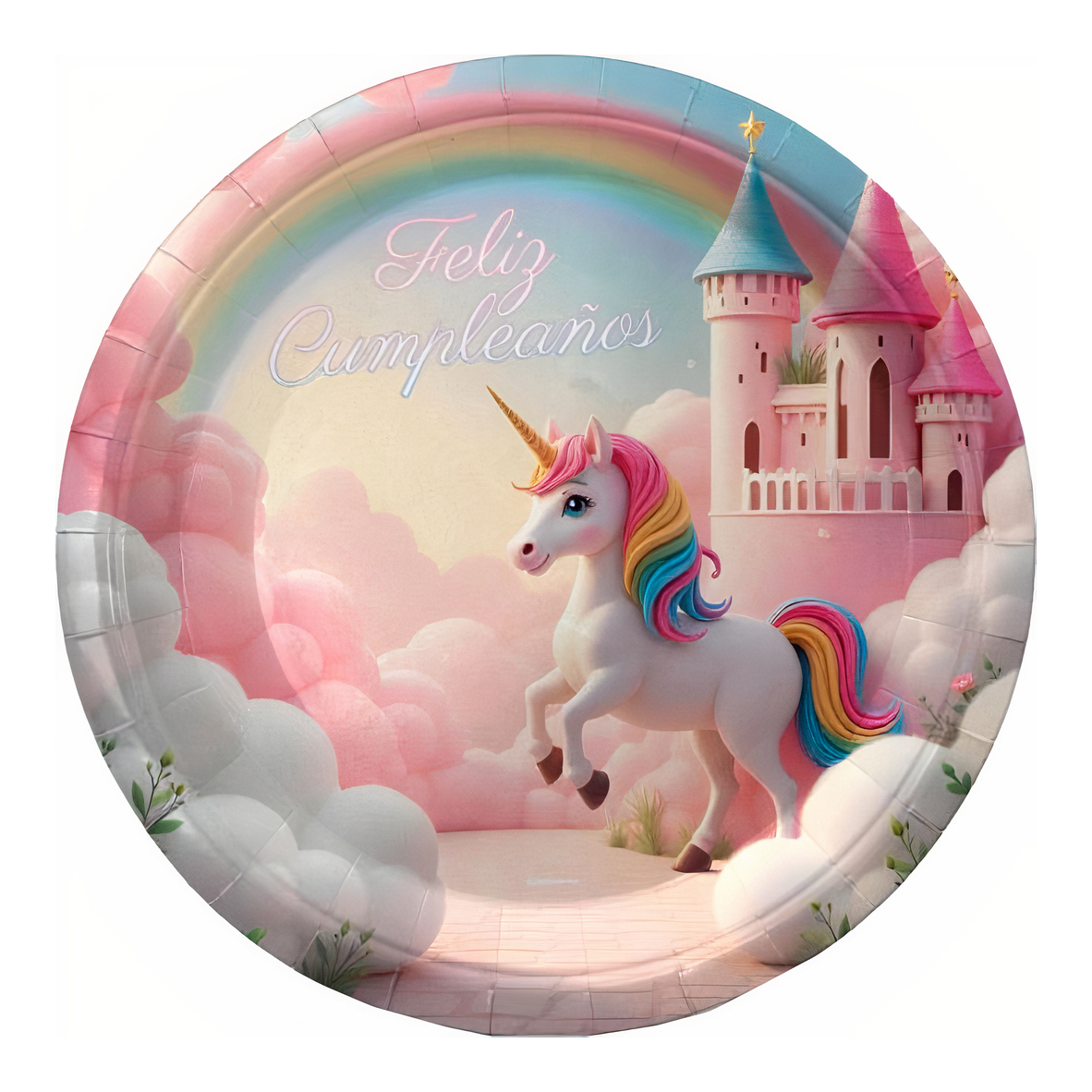 Pratos de Unicórnio rosa com castelo de 18 cm - 8 unidades