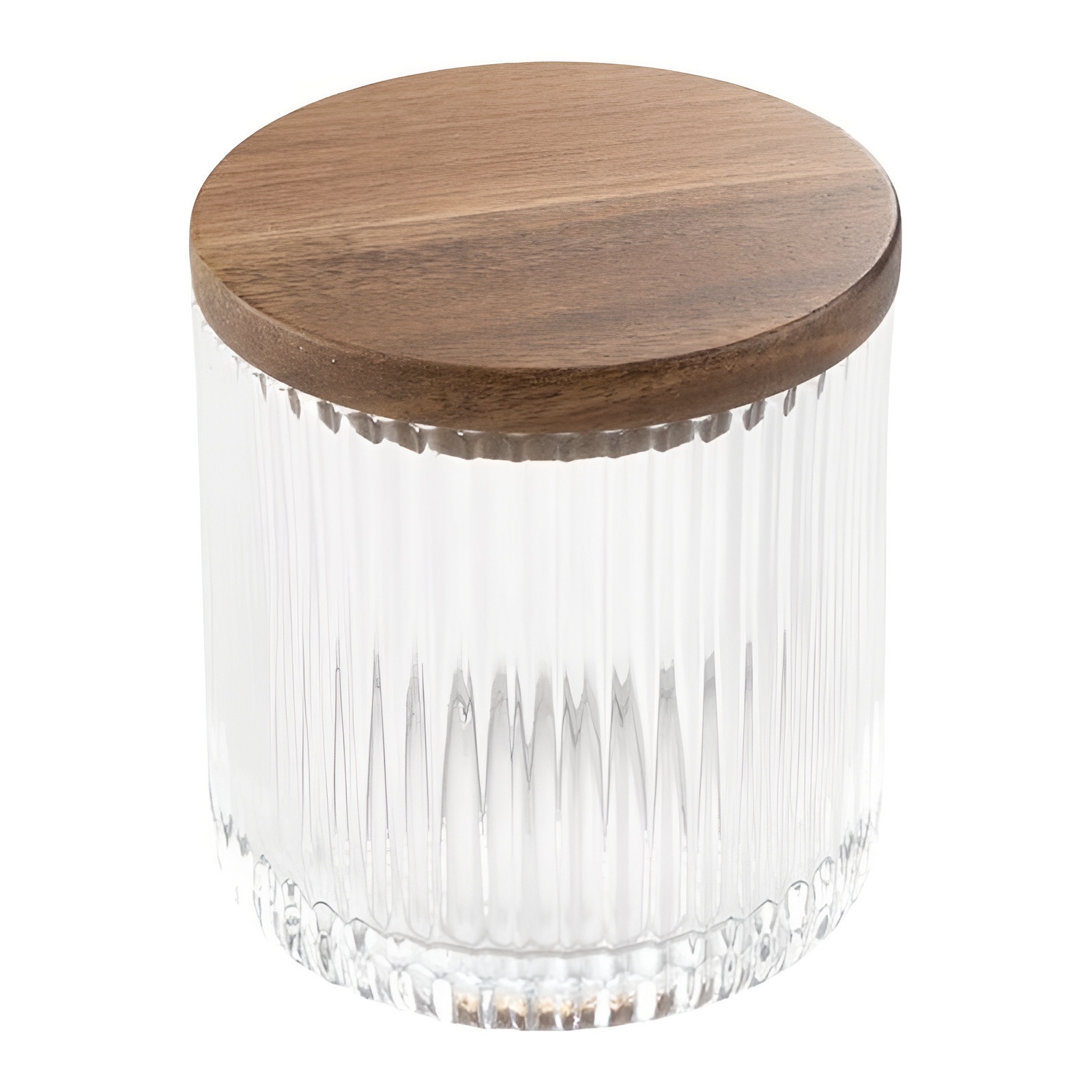 Recipiente para cotonetes e discos de algodão com tampa de madeira
