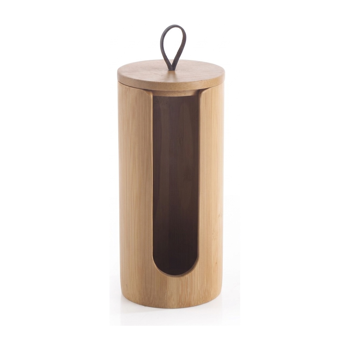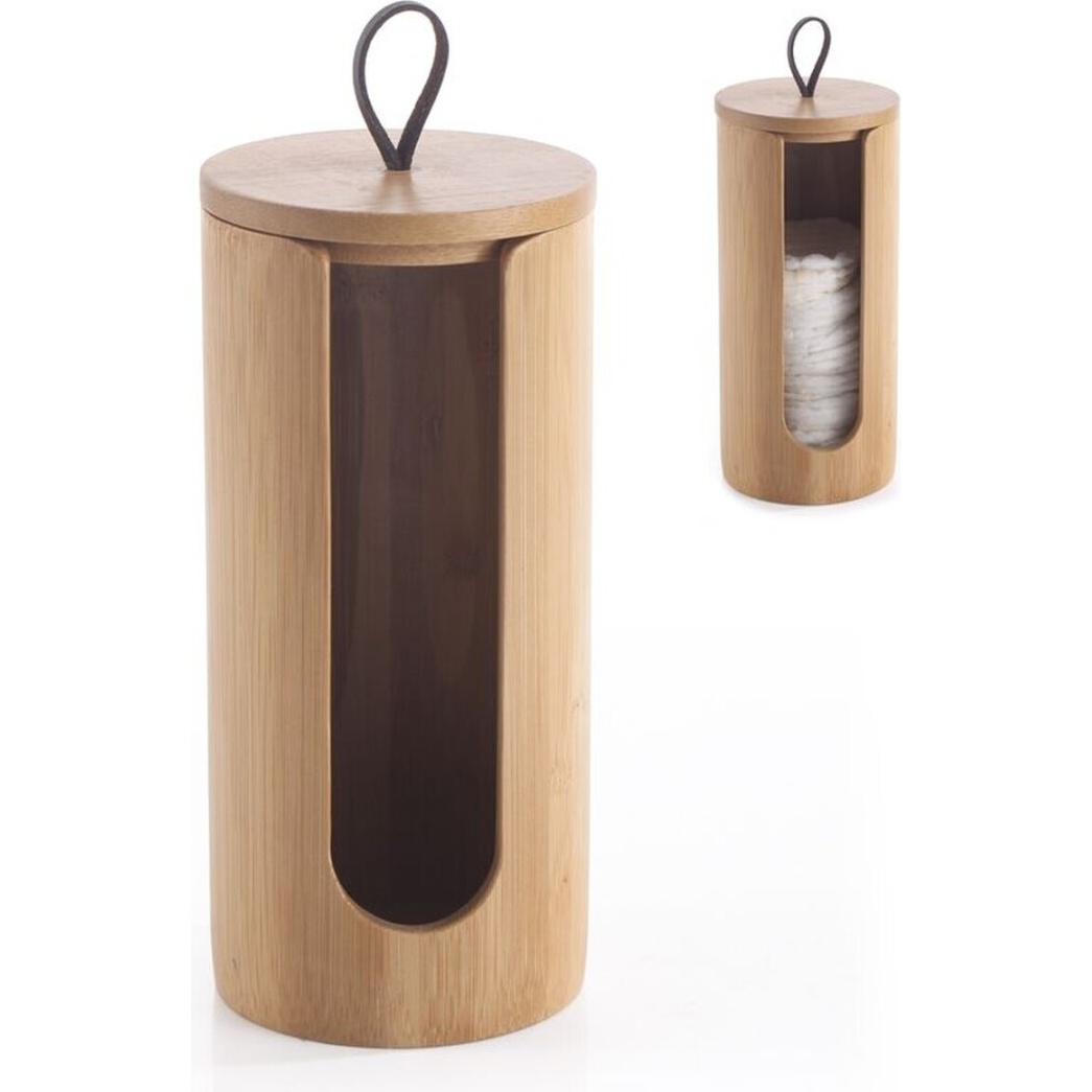Recipiente elegante e funcional, concebido para manter os seus discos de algodão sempre à mão. Design vertical com abertura frontal e tampa com alça que facilita o acesso e acrescenta um toque decorativo ao banheiro ou à penteadeira. Acabamento natural que combina com estilos modernos e rústicos, ideal para organizar a sua rotina de beleza.