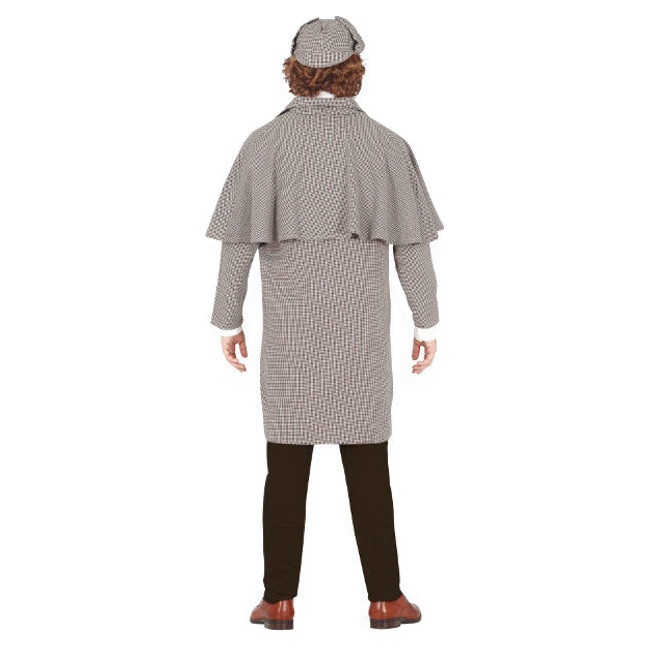 É composto por um casaco tipo trench coat que se fecha à frente. Inclui também um gorro de tecido e um colete para criar um look mais formal. Pode completar o conjunto com um cachimbo que pode encontrar na nossa secção de acessórios.