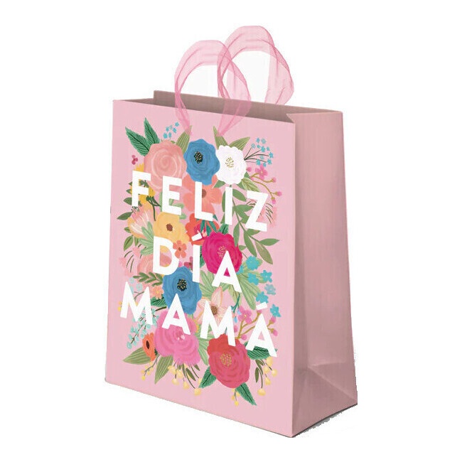 Saco de oferta 24 x 18 x 10 cm Feliz Dia da Mãe e flores - 1 peça