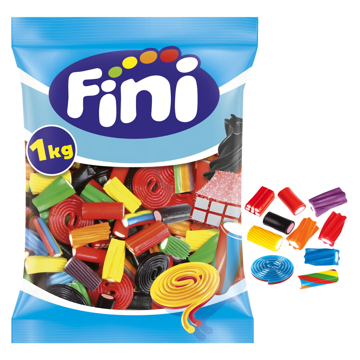 Saco sortido com alcaçuz e discos coloridos - Fini Mix alcaçuz glitter - 1 kg