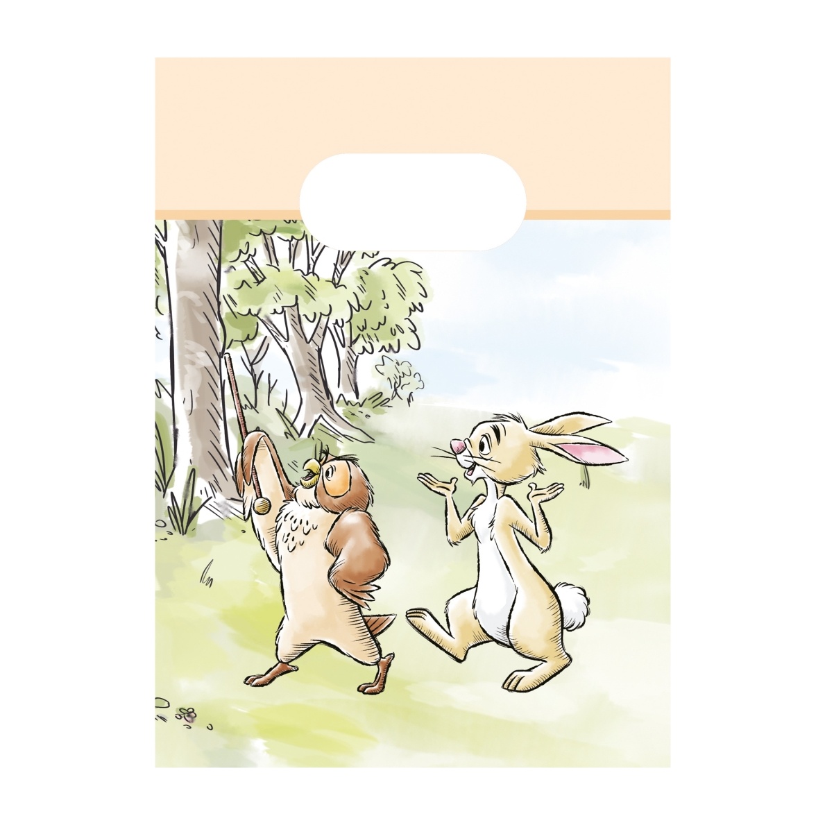 4 unidades por pack. Sacos de papel com ilustrações do Winnie the Pooh, Tigrão, Leitão e Ió, num design inspirado na natureza. Cores suaves e ilustração infantil que conferem um toque terno e alegre a qualquer celebração. Alça troquelada para uma pega confortável e manuseio fácil. Papel com certificação FSC, uma opção mais sustentável para si.