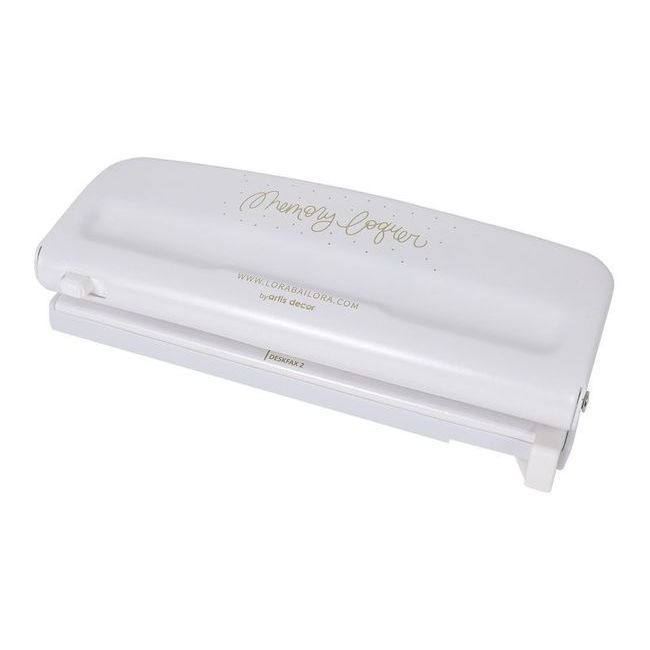 Perfuradora para papel, cartão e acetato. Faz furos de 3 em 3. Foi concebida para agendas e diários. Permite cortar todos os furos juntos ou separados. Dependendo do tamanho do papel que tiver, este será colocado de uma forma ou de outra. Tem algumas indicações para colocar o papel corretamente.