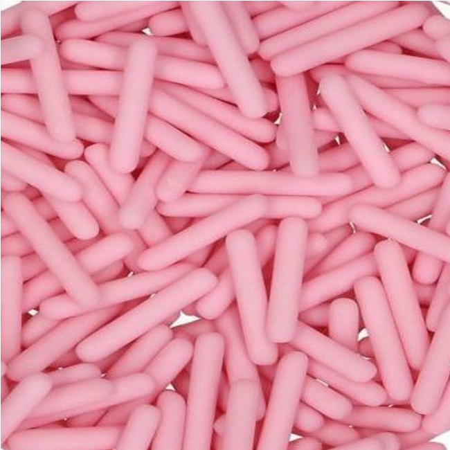 Ingredientes Rosa: açúcar (82%), sêmola (trigo), estabilizador: E414, corante: E120.