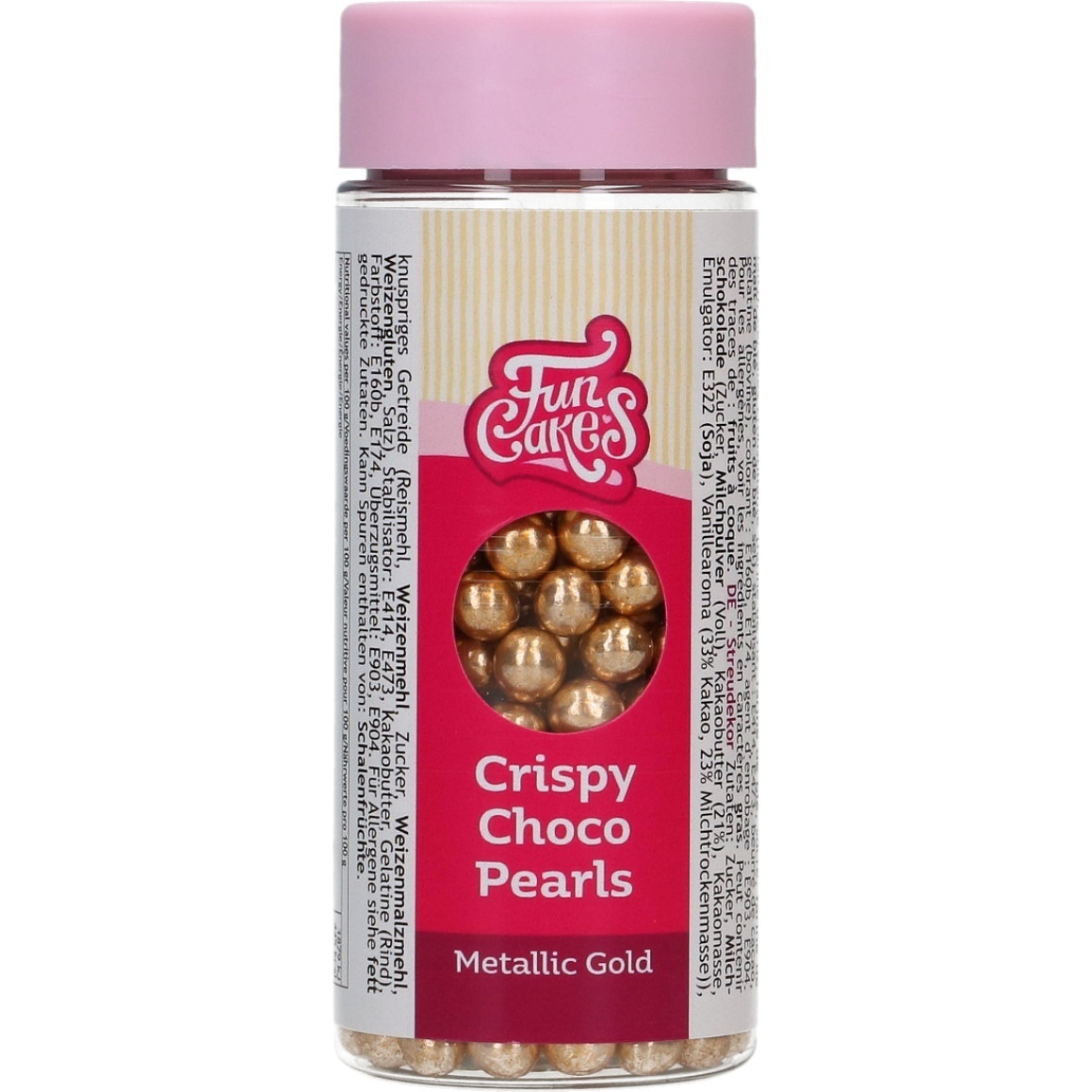 Conceda aos doces do(a) senhor(a) um toque de luxo com as pérolas crocantes de chocolate em tom dourado metálico da FunCakes. Conferem brilho elegante, textura crocante e um acabamento sofisticado, ideal para casamentos e eventos especiais.