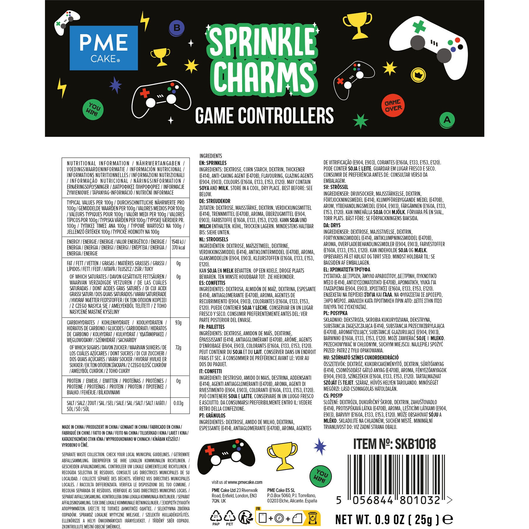 Ingredientes: dextrose, amido de milho, dextrina, espessante (E414), antiumectante (E470B), saborizante, agentes de revestimento (E904, E903), corantes (E160A, E133, E153, E120).