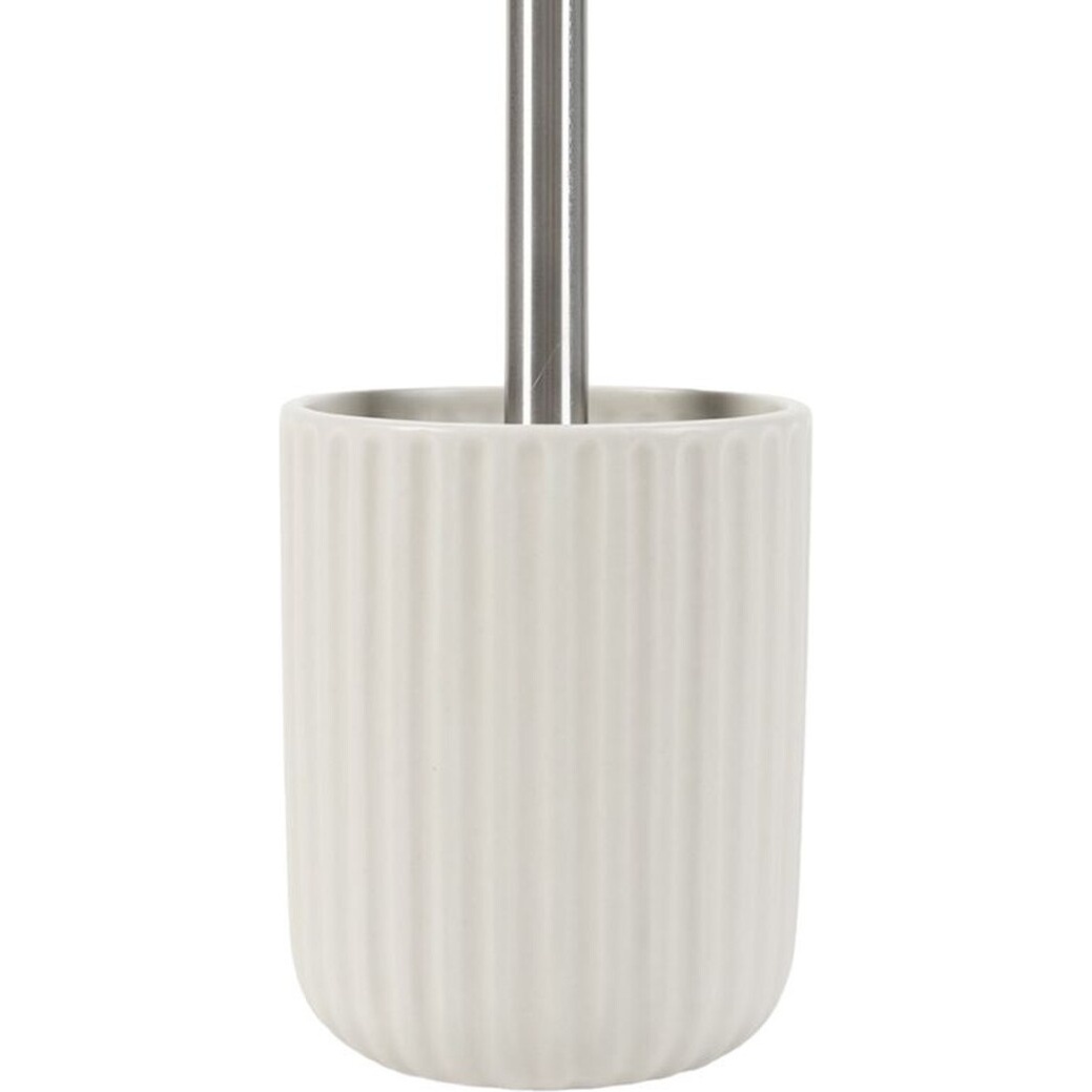 Suporte para escova sanitária de design nórdico minimalista, concebido para integrar-se discretamente em banheiros de estética moderna.