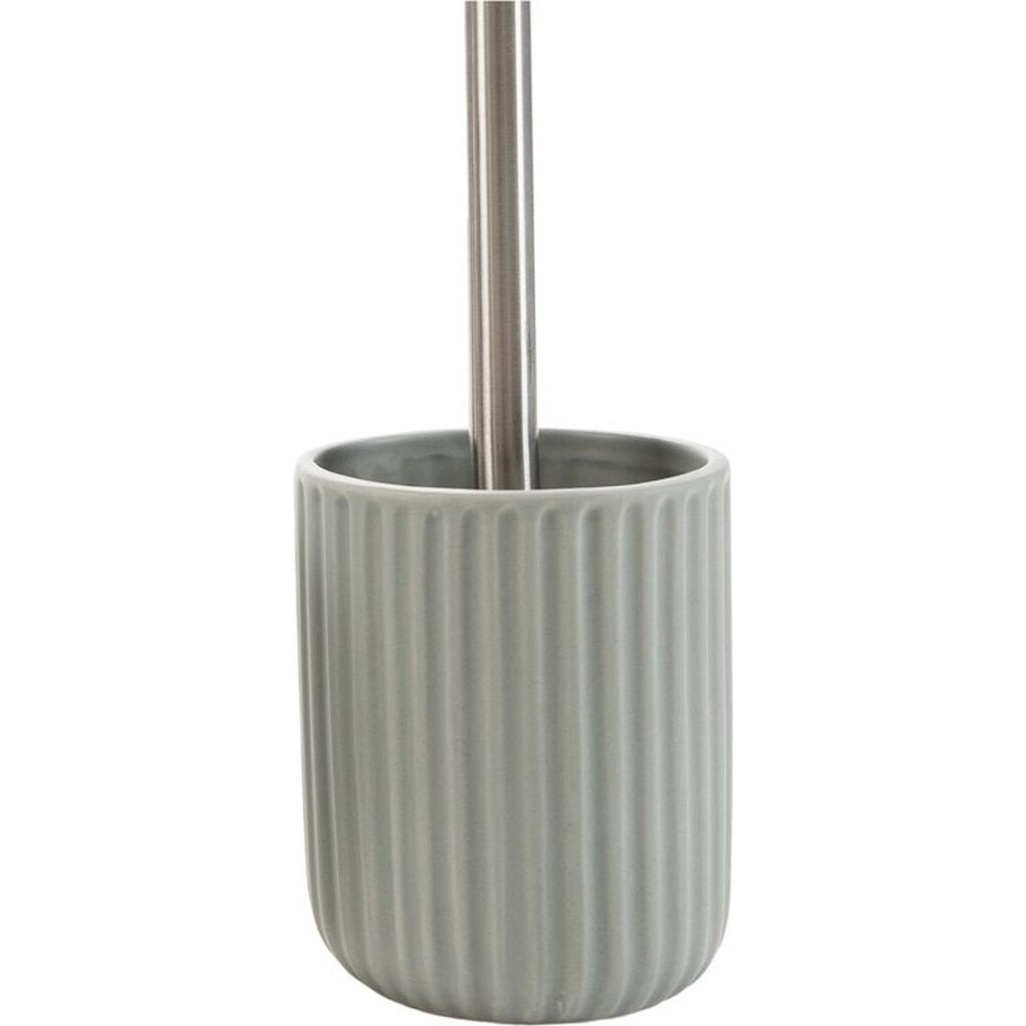 Suporte para escova sanitária cinzento com design minimalista e linhas verticais que conferem uma presença discreta e elegante.