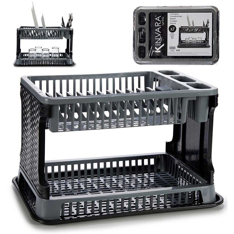Suporte para pratos 44,5 x 30,3 x 27 cm 2 níveis em rotim - 1 unid.