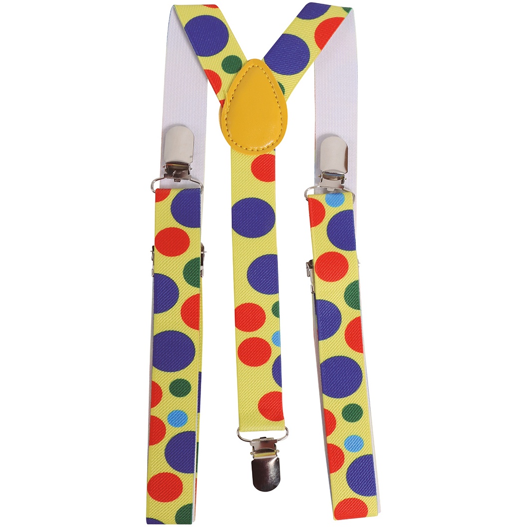 Suspensórios amarelos com bolinhas coloridas