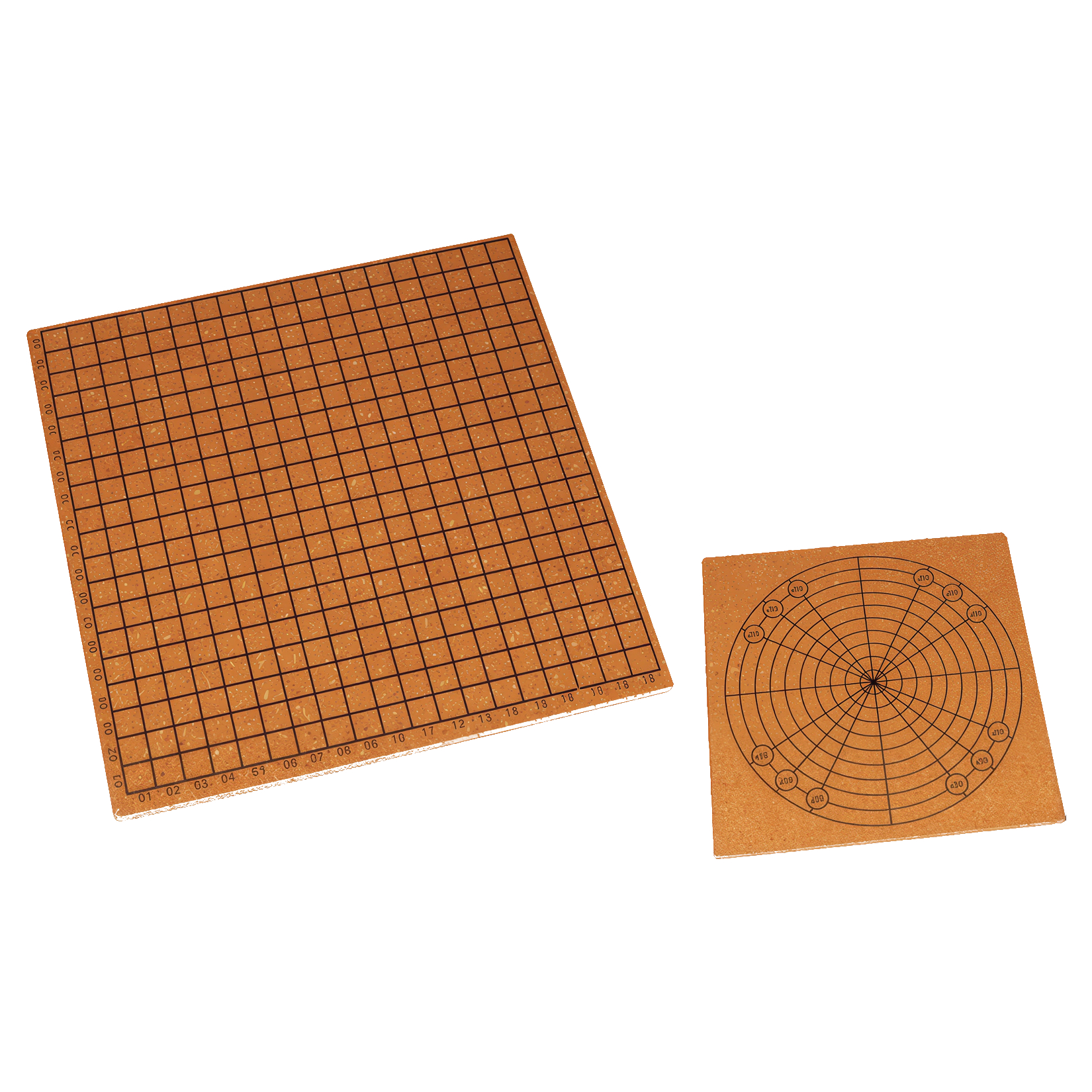 - Constitui-se num tabuleiro de dupla face, com uma grade quadrada numa face e uma grade circular na outra.