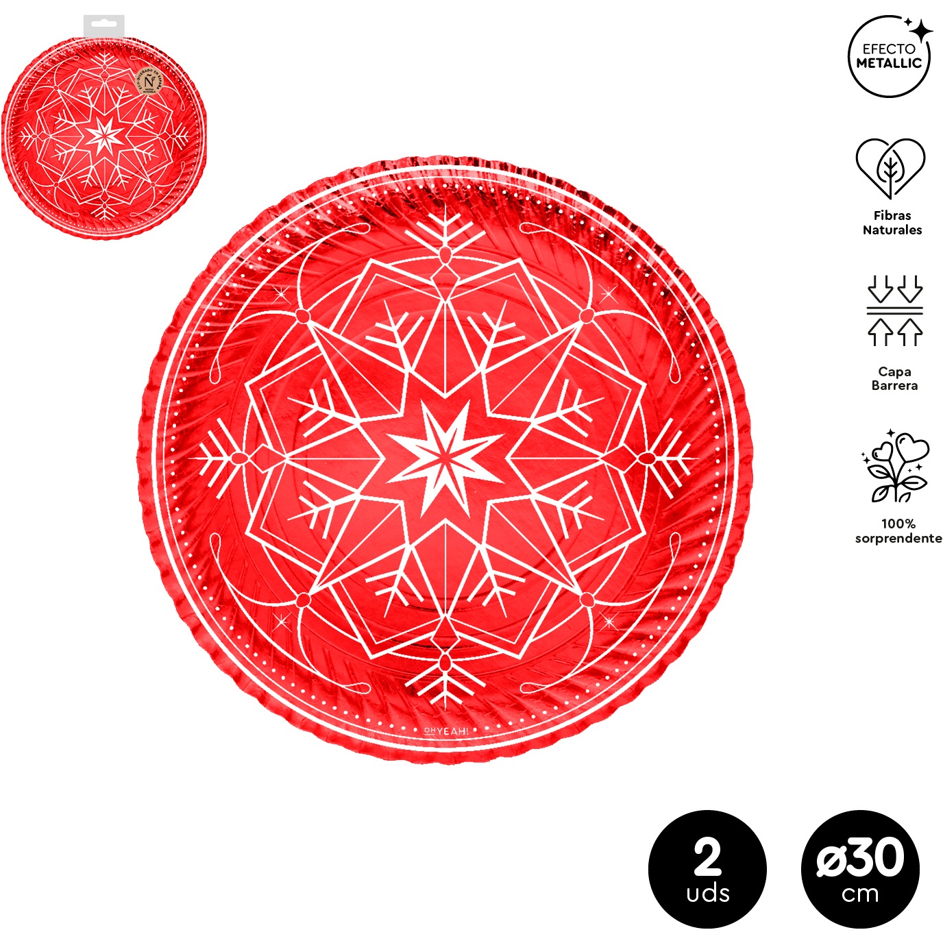 Bandeja de 30 cm de cartão redonda Winter vermelha - 2 unidades