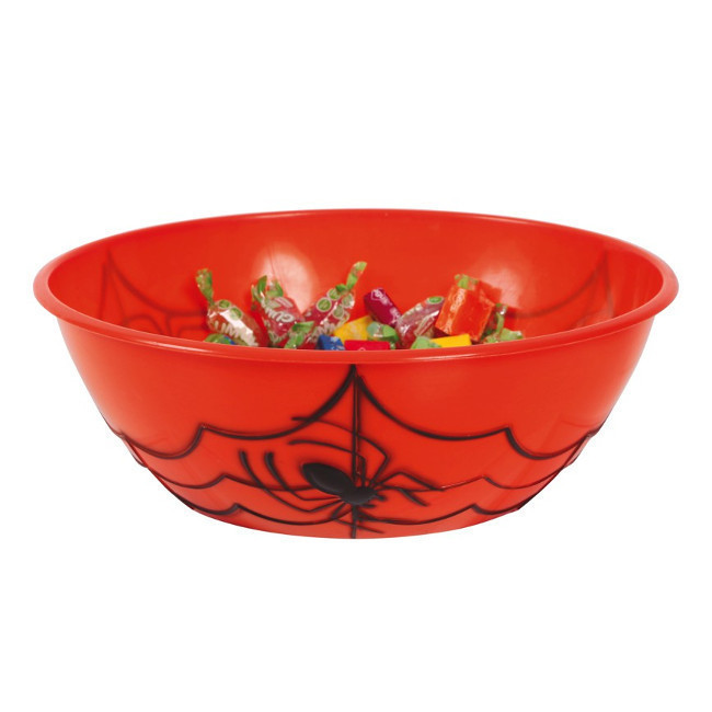 Esta taça de plástico surpreende pelo seu desenho peculiar de uma teia de aranha sobre um fundo cor de laranja. A sua versatilidade é notável, pois pode ser utilizada para conter doces, bebidas ou pequenas decorações - os mais pequenos vão adorar!