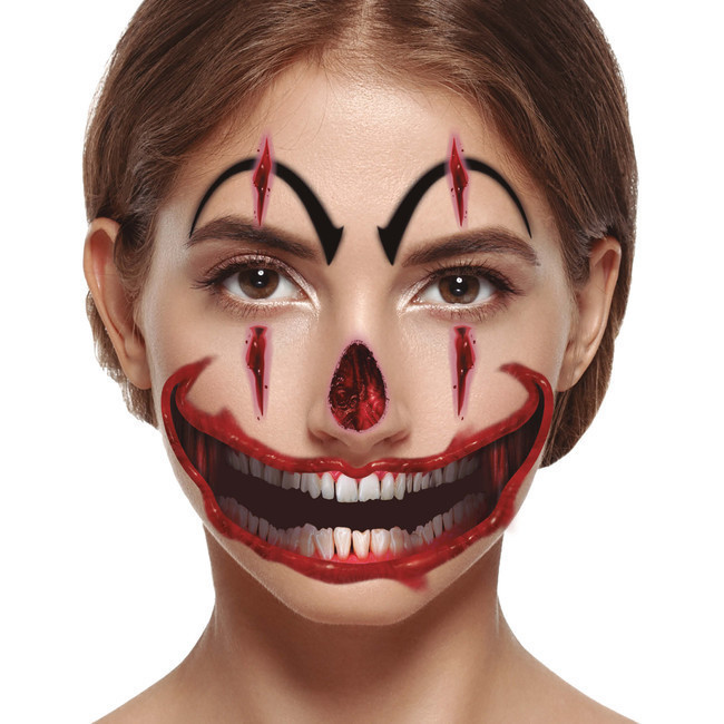 • Contém tatuagem para a boca, nariz e olhos superiores e inferiores.