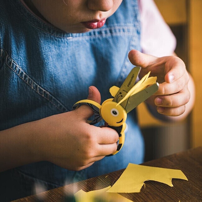 - Tesoura para crianças com cabo em forma de animal e lâminas com afiação progressiva para otimizar o corte e garantir a segurança