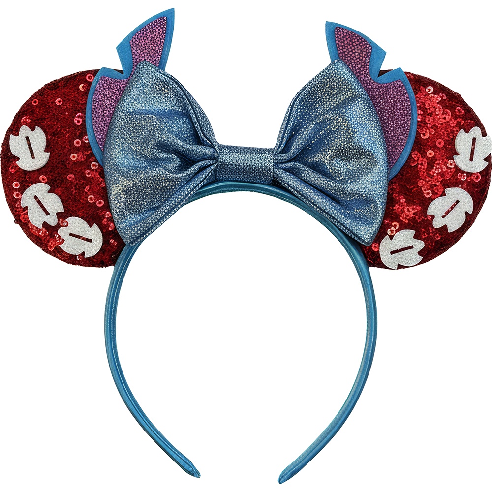 - Design inspirado na Minnie, com orelhas redondas e um grande laço brilhante.