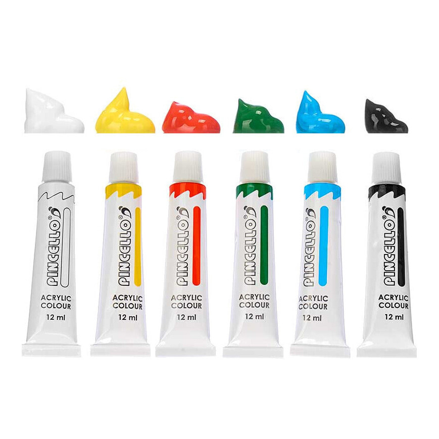 Tinta acrílica 12 ml - Pincel - 6 potes