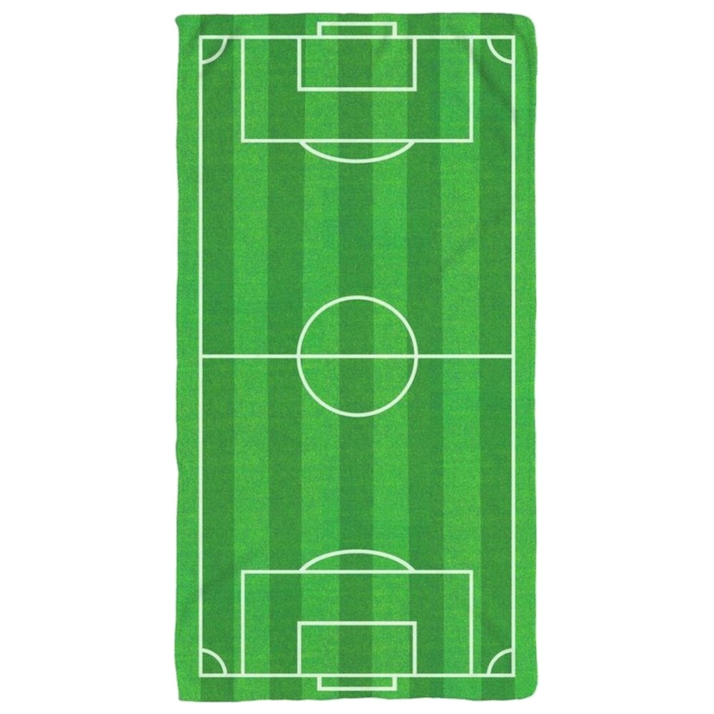 Toalha de praia com um desenho que reproduz um campo de futebol, ideal para os adeptos que desejam levar a sua paixão para a praia ou para a piscina.