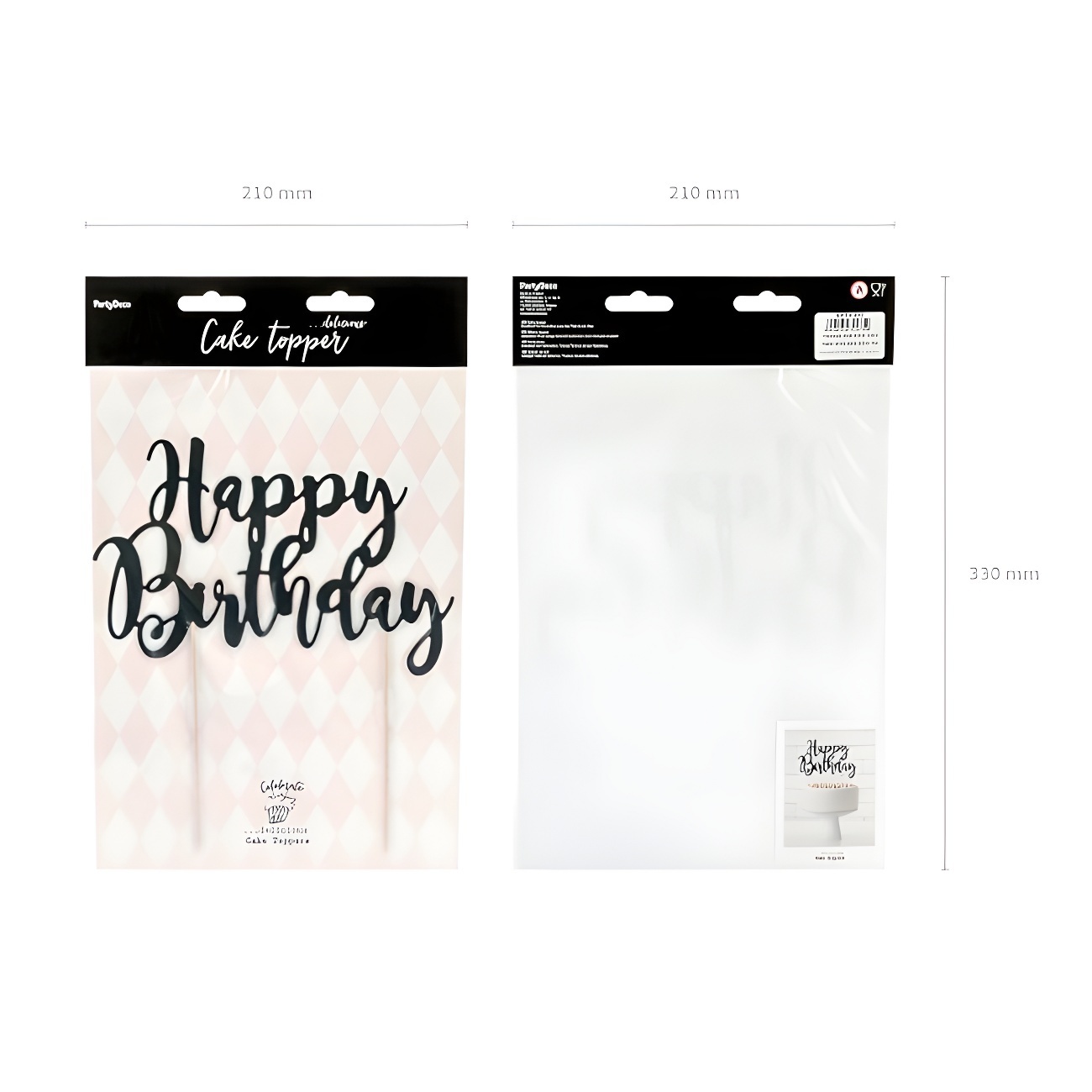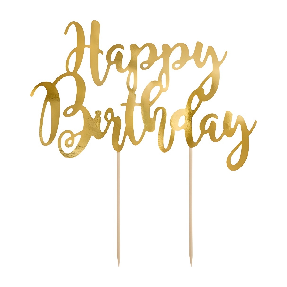 É composto por duas varas de madeira, com cerca de 15 cm de comprimento, às quais está presa a inscrição Happy Birthday, que pode colar no bolo ou em qualquer outro elemento que conceba para o efeito. Dê um toque elegante à sua festa com este acessório.