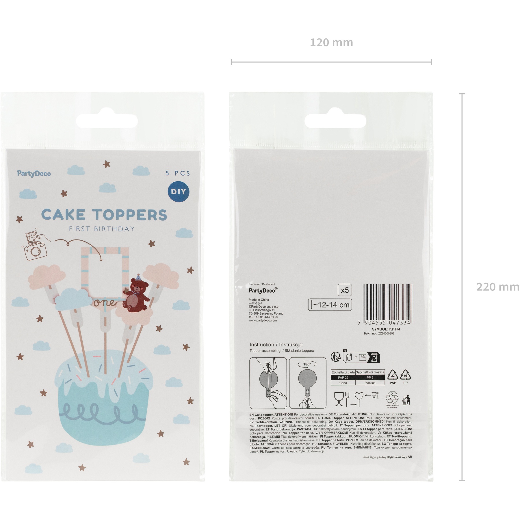 Topper para bolo de Primeiro Aniversário Ursinho - 5 unidades