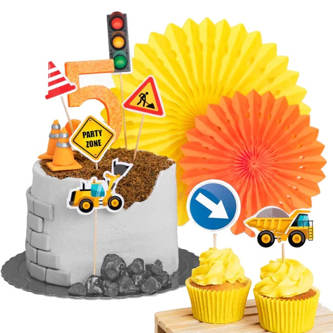 Topo de bolo de construção - 7 peças