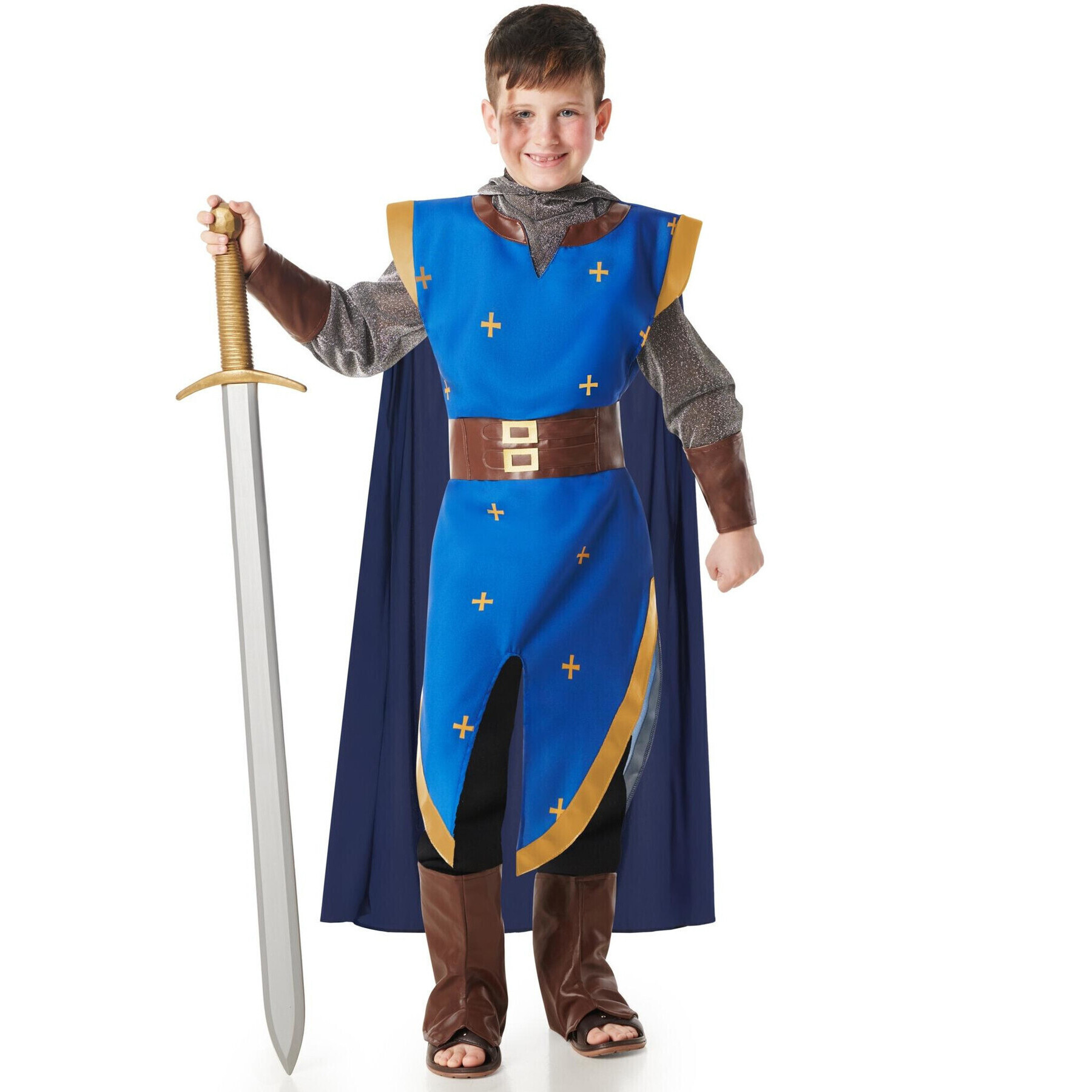 Modelo clássico de cavaleiro medieval com uma cor azul muito bonita. Transforme-se em um verdadeiro cavaleiro medieval com este modelo unissex, adequado tanto para menino quanto para menina.