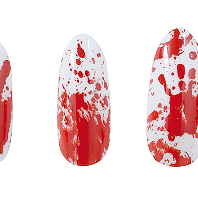 Conjunto de unhas postiças ensanguentadas ideais para dar um toque aterrador à sua fantasia de Halloween.