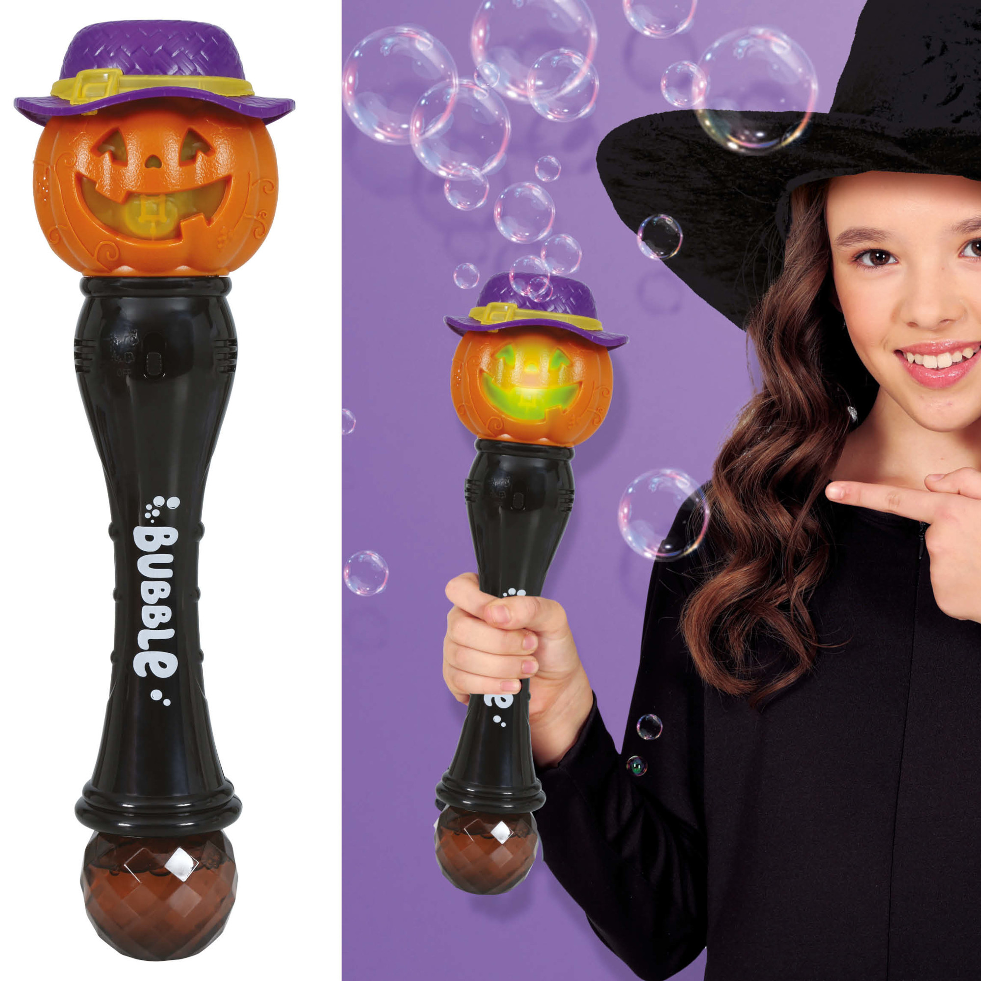 Varinha abóbora com bolhas, luz e som, 32 cm