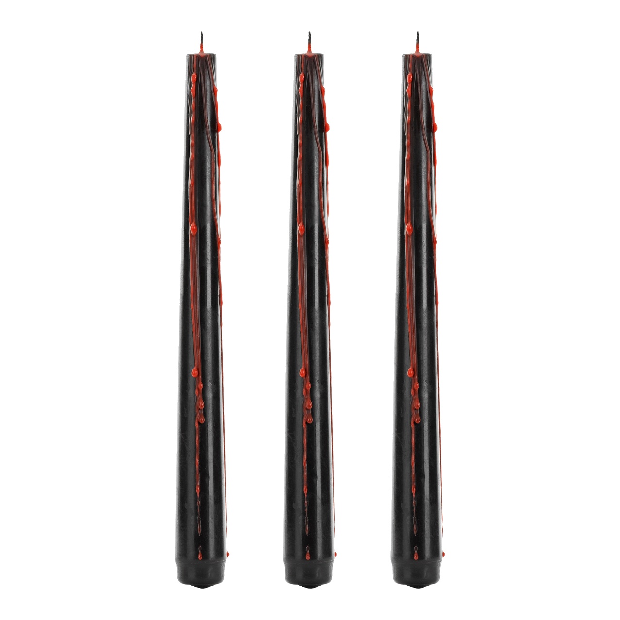 Velas pretas com efeito gota de sangue 25 cm - 3 unidades