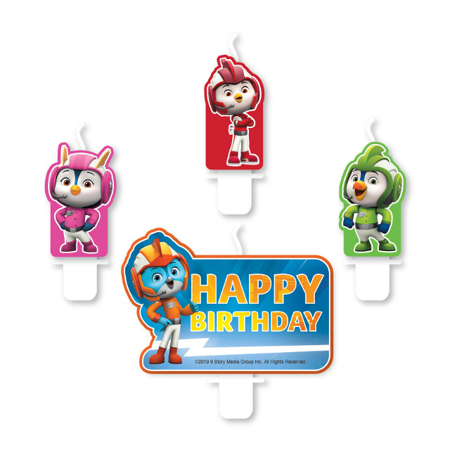 Neste conjunto de 4 velas, cada unidade reproduz a forma de cada uma das personagens de Top Wing: três velas mostram Rod, Penny e Brody com fundo vermelho, cor-de-rosa e verde, respetivamente. A quarta vela apresenta o Swift, juntamente com a inscrição "Happy Birthday" num fundo azul com um rebordo laranja.